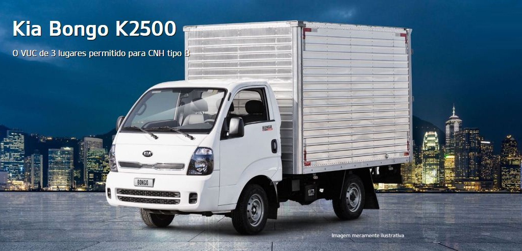 O novo Kia Bongo K2500 2022 turbo diesel, oferece uma cabine confortável, centrado no fato dele possuir console central com descansa-braço rebatível, duplo, porta-objetos com tampa do porta-luvas, ventilação forçada com recirculação e quatro velocidades. Comporta 3 passageiros, é um veículo utilitário VUC permitido para CNH tipo B , ideal para quem busca uma pequeno caminhão para transporte de cargas útil de até 1.812 KL.